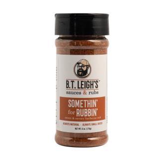 BT Leigh's Somethin' for Rubbin' Sweet and Savory Barbeque Rub- Sweet, salty, smoky and savory with a slight heat and the faint touch of aromatic herbs. Introducing the original - the one that kicked off a flavor revolution. Turbinado sugar blends harmoniously with ancho and guajillo chiles, resulting in a complex flavor profile that's both sweet and smoky, with just the right amount of heat. This versatile blend can elevate any barbecue dish and is sure to spark your culinary creativity.