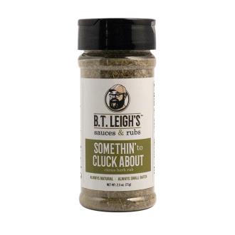 BT Leigh's Somethin' to Cluck About Citrus Herb Rub- Aromatic herbs blended with bright citrus, earthy juniper berries an nutmeg. No Sugar/Keto/Paleo. Don't hold back, be bold and try something new! Indulge your taste buds with a burst of refreshing citrus, a savory blend of herbs, smoky salt, and earthy juniper berries that come together to create a rich and delectable flavor to enhance any dish.