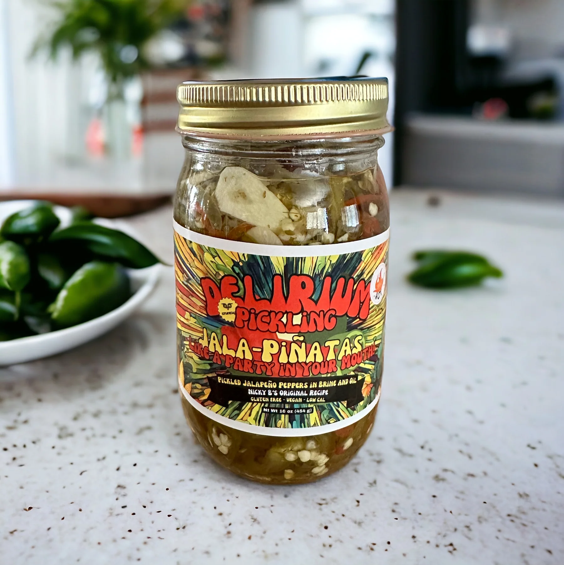 Introducing Jala-Pinatas, the perfect addition to your daring and adventurous palate! Our pickled jalapeno peppers, handcrafted with Nicky B's original recipe, are packed with bold flavor and a touch of heat. And with their gluten-free, vegan, and low calorie qualities, you can indulge without any hesitation. Tickle your taste buds with Jala-Pinatas now!