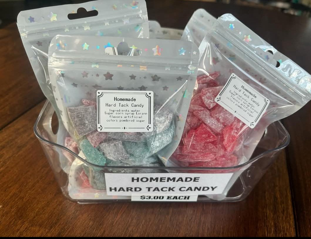 Homemade Hard Tack Candy comes in a variety pack, which includes, blue raspberry, green apple, grape and cherry, or a cinnamon flavor! 1/4 lbs (4 ounces)